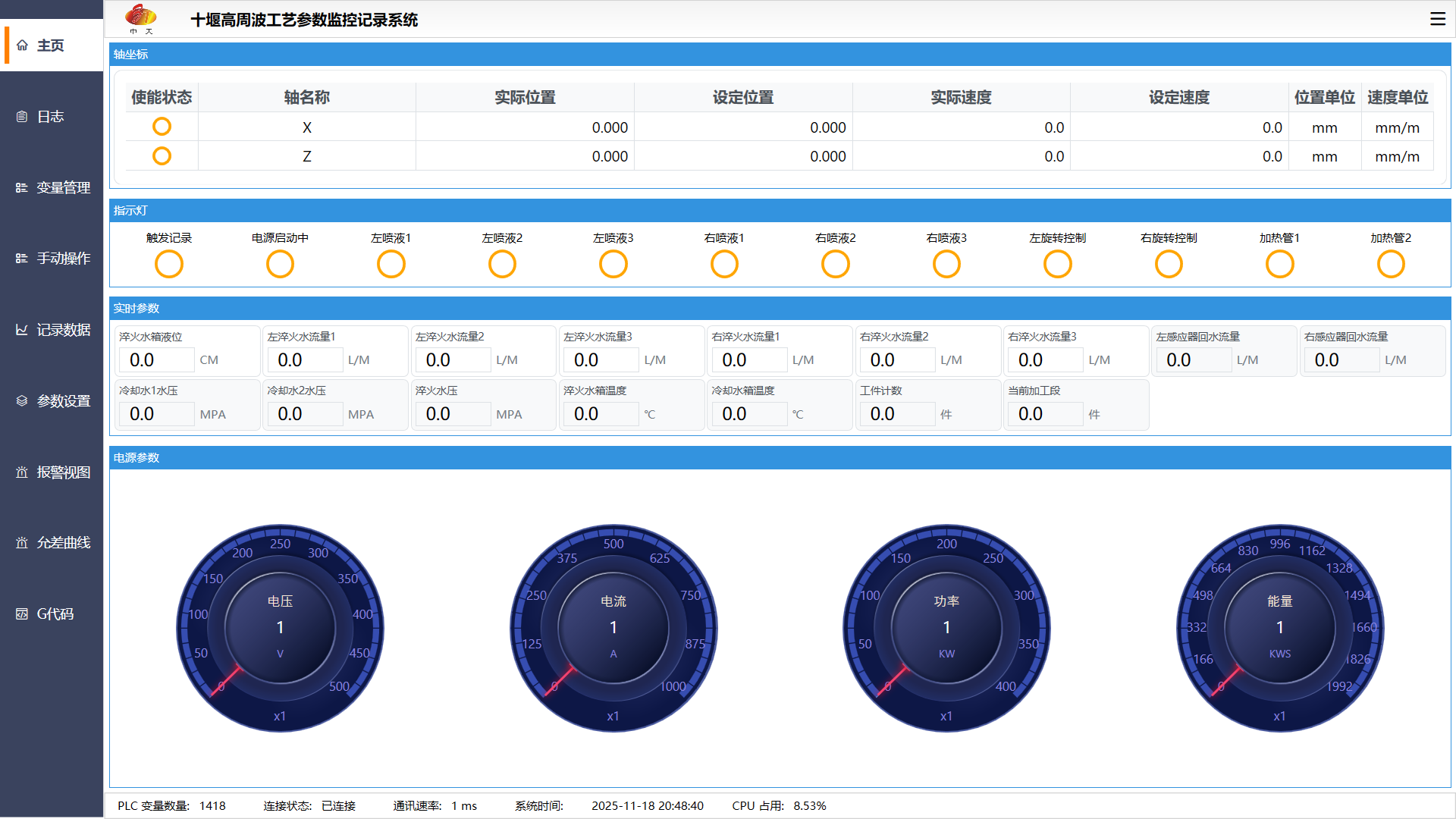 工藝參數(shù)監(jiān)控記錄系統(tǒng)主界面